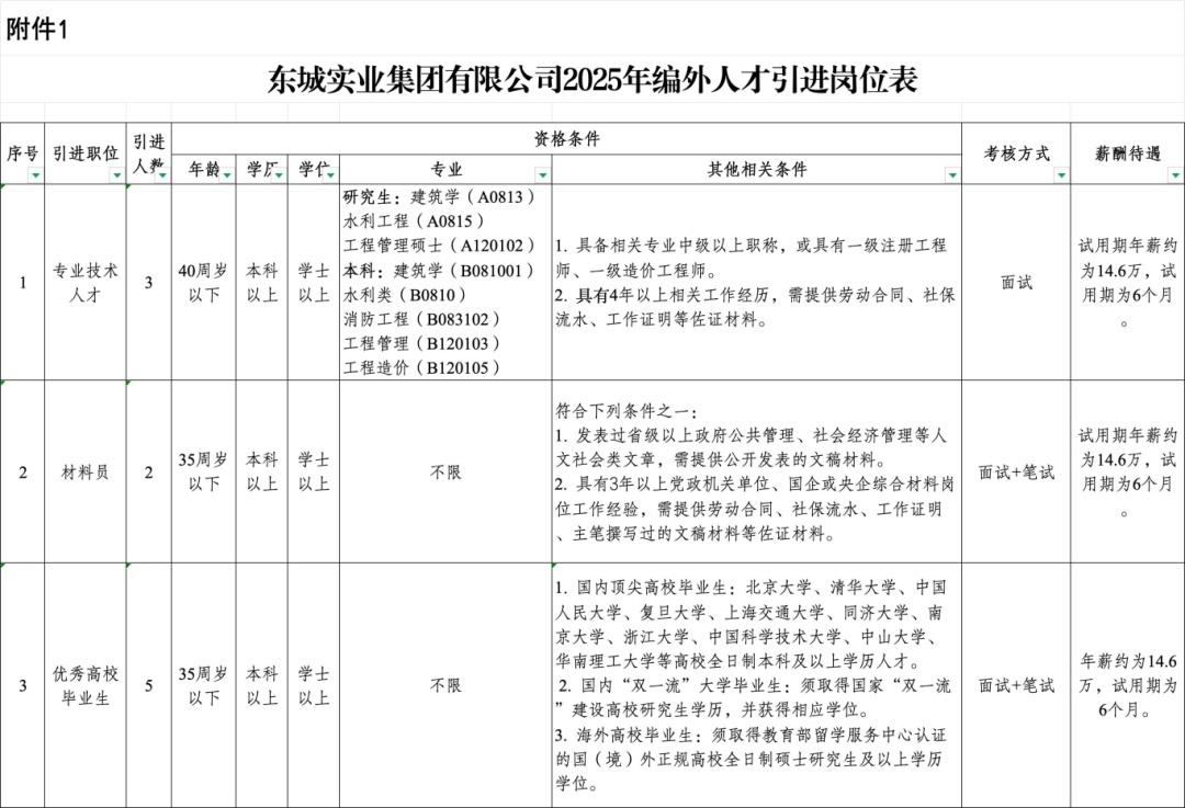 3️⃣东城实业集团有限公司2025年引进编外人才10人